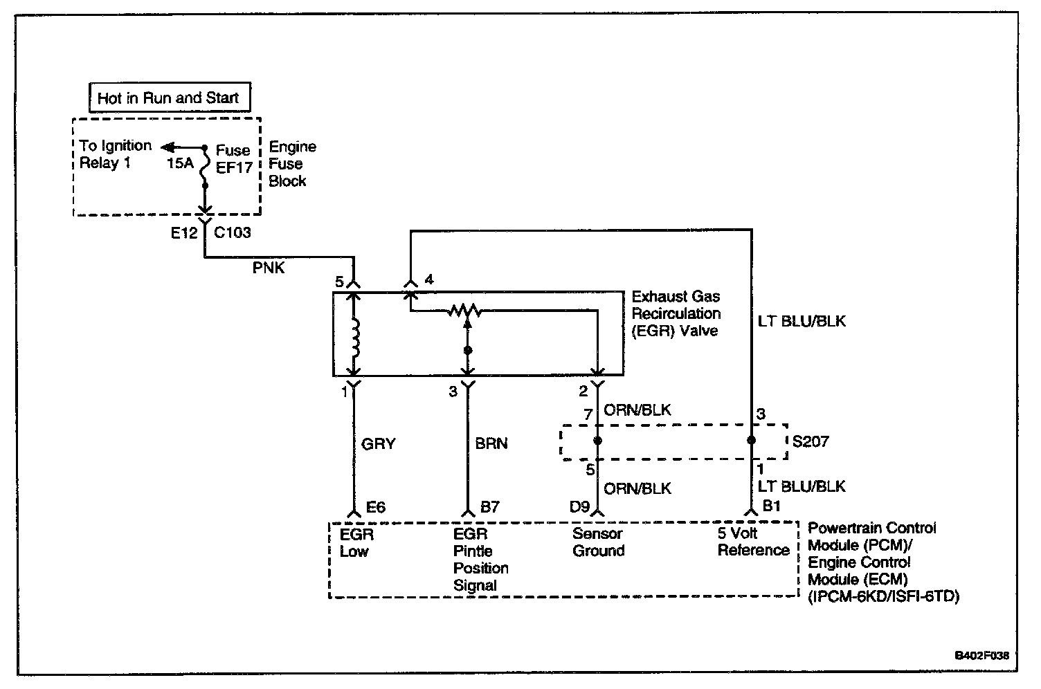 The PCM/ECM monitors the results of its command through a feedback signal. By sending a 5 volt reference and a ground to the EGR valve, a voltage signal representing the EGR valve pintle position is sent to the PCM/ECM. This feedback signal can also be monitored on a scan tool and is the actual position of the EGR pintle. The Actual EGR Position should always be near the commanded or Desired EGR Position.
