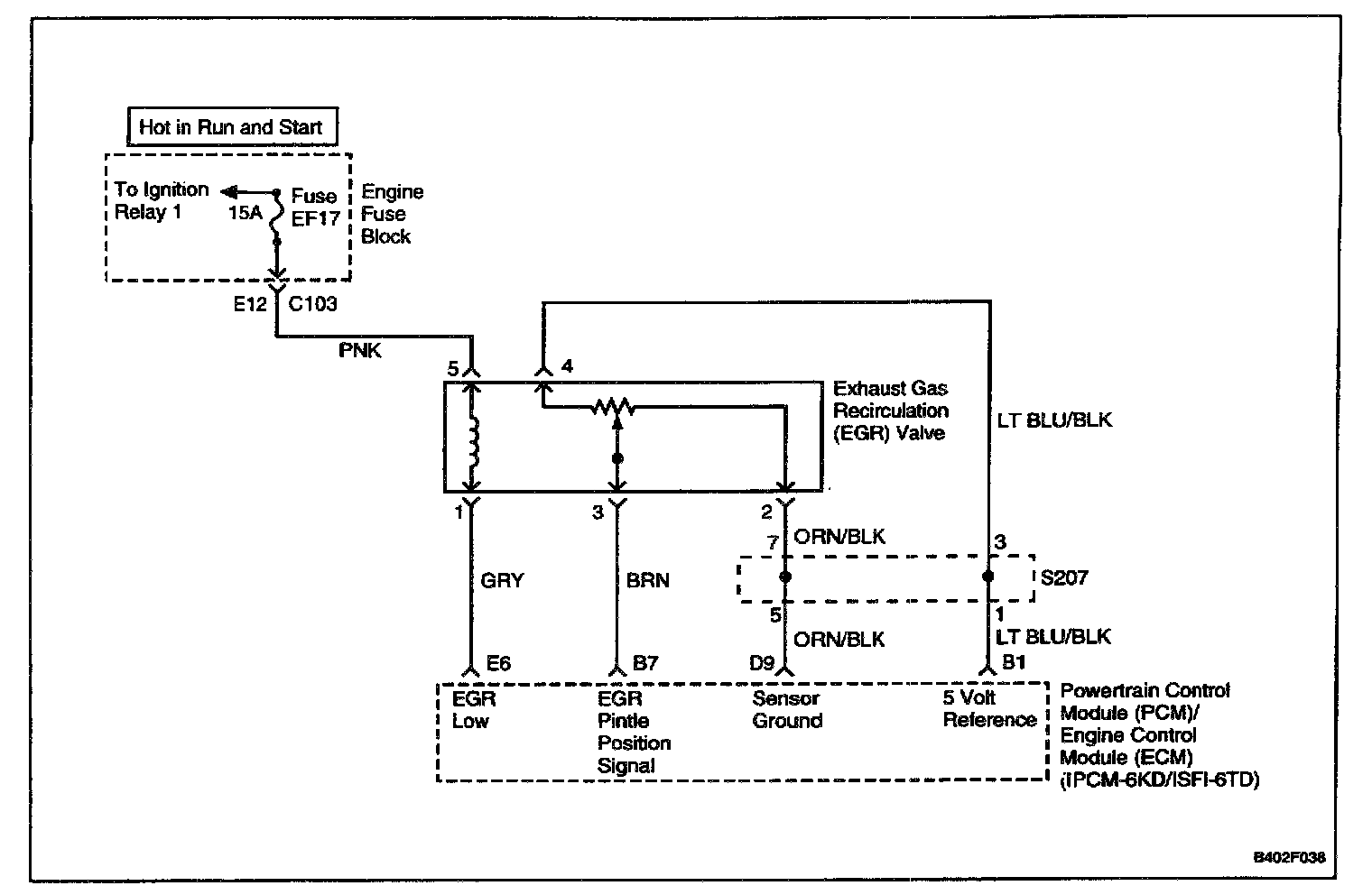 The PCM/ECM monitors the results of its command through a feedback signal. By sending a 5 volt reference and a ground to the EGR valve, a voltage signal representing the EGR valve pintle position is sent to the PCM/ECM. This feedback signal can also be monitored on a scan tool and is the actual position of the EGR pintle. The Actual EGR Position should always be near the commanded or Desired EGR Position.