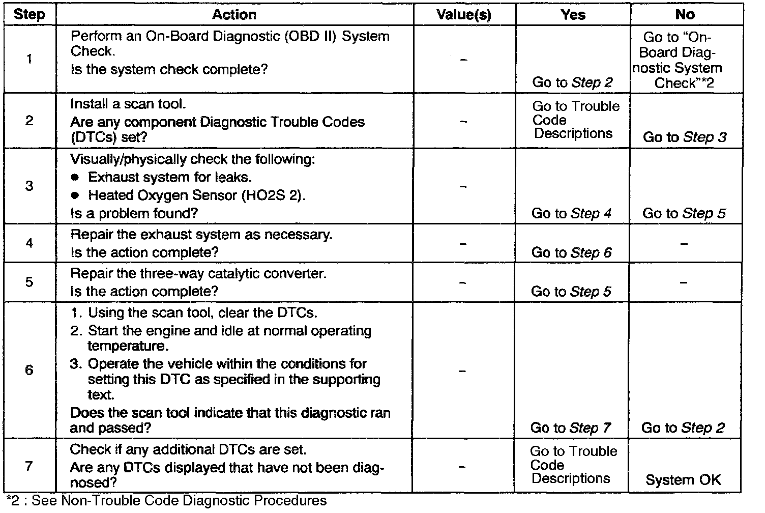 3. This step includes checks for conditions that can cause the three-way catalytic converter to appear degraded. Repair any problems found before proceeding with this table.