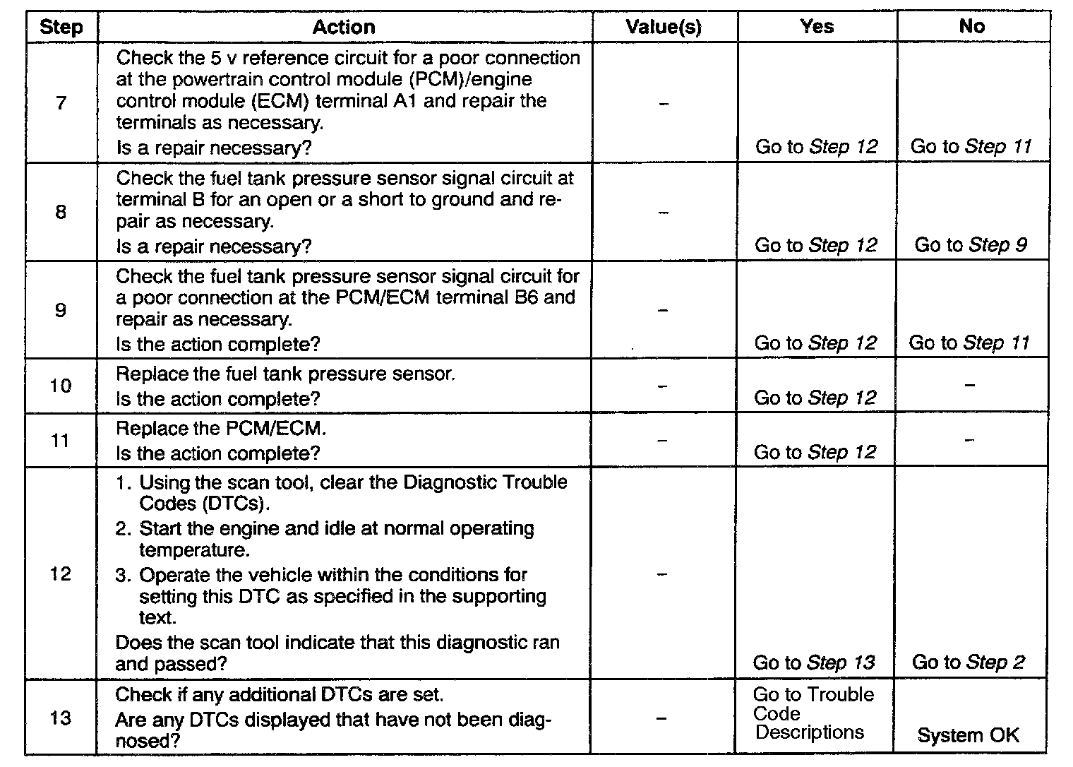 11. If no faults have been found at this point and no additional DTCs were set, refer to "Diagnostic Aids".