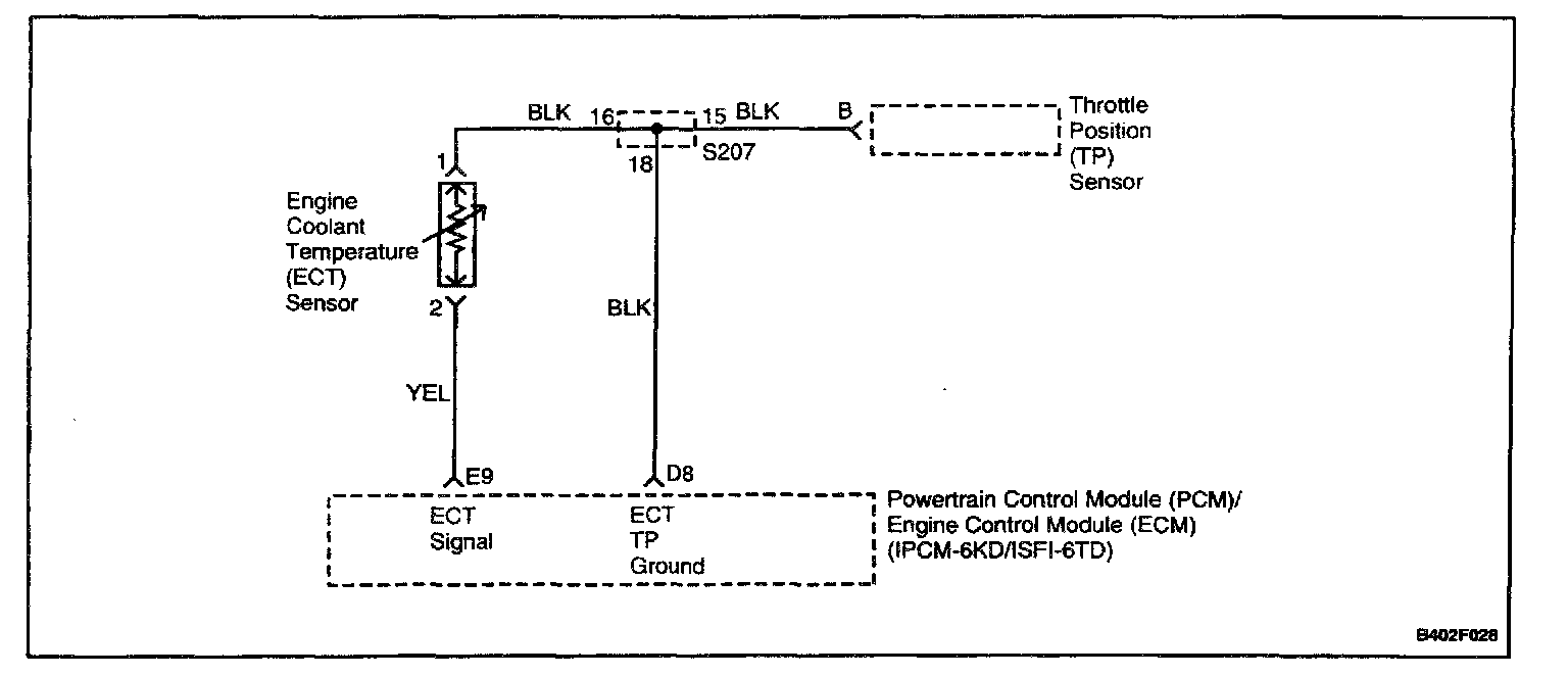 - Damaged harness - Inspect the wiring harness for damage. If the harness appears to be OK, observe the ECT display on the scan tool while moving connectors and wiring harnesses related to the ECT sensor. A change in the ECT display will indicate the location of the fault.