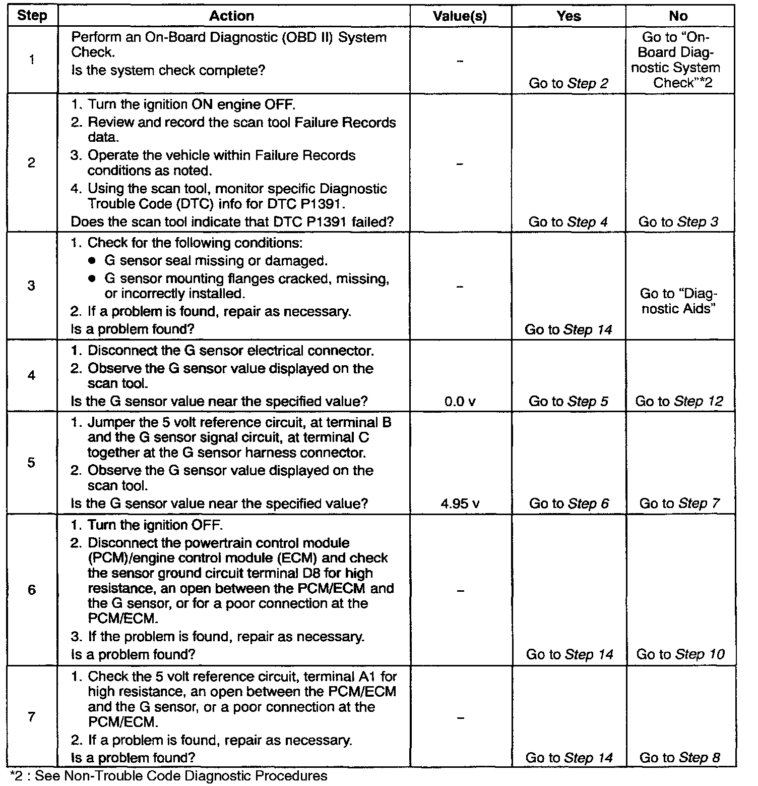 Since the G sensor shares the PCM/ECM 5 v reference and ground terminals with the Throttle Position (TP) sensor, a damaged TP harness or sensor could cause a G sensor DTC to set. See Diagnosis By Symptom.
