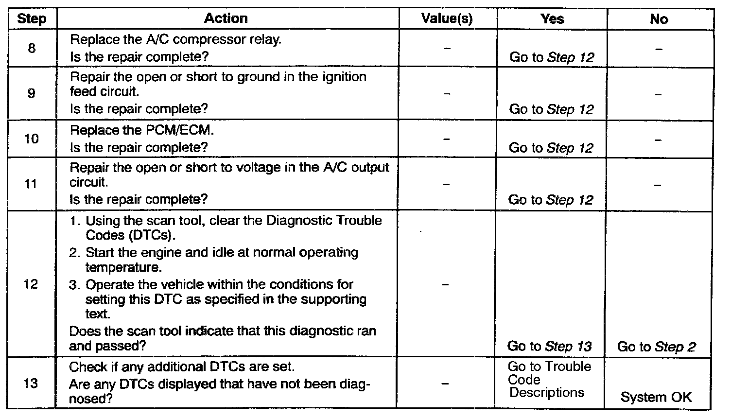 - The PCM/ECM has commanded the A/C ON and no voltage is detected on the A/C clutch status line for more than 5 seconds.