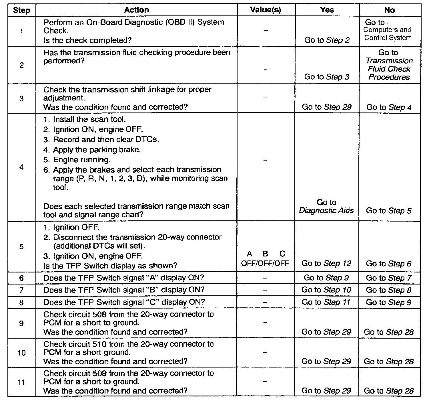 - TFP Val. Position Sw. indicates park or neutral for 3 seconds.