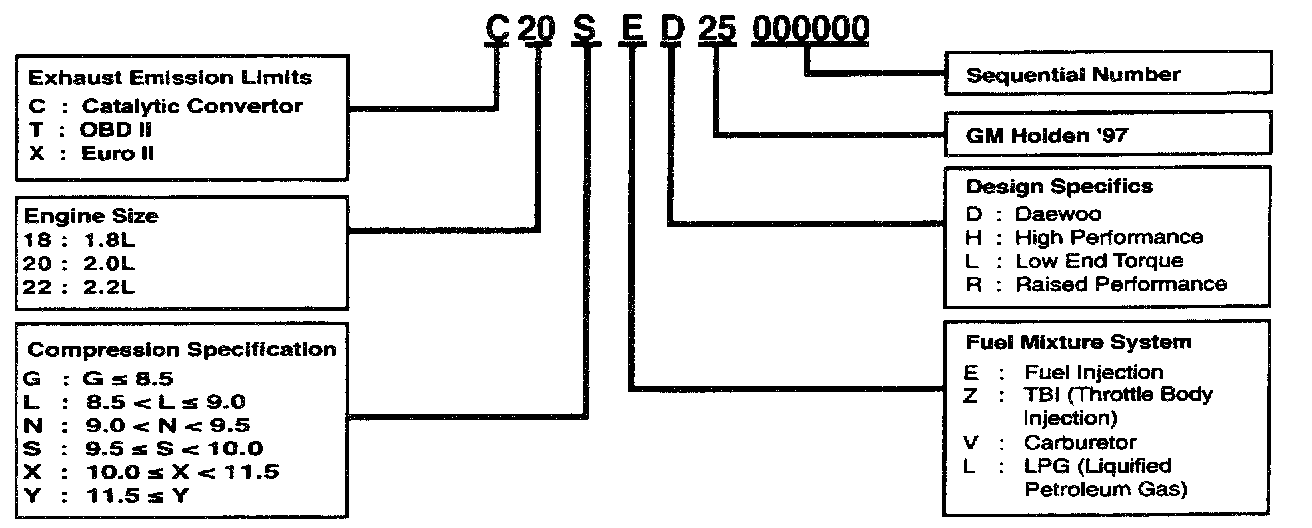 The engine number is stamped on the cylinder block under the No.4 exhaust manifold of the engine.