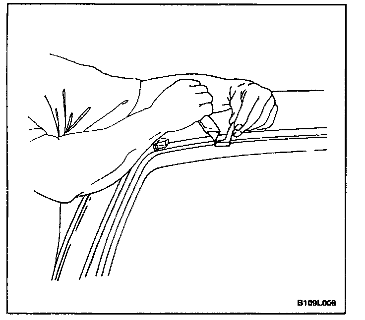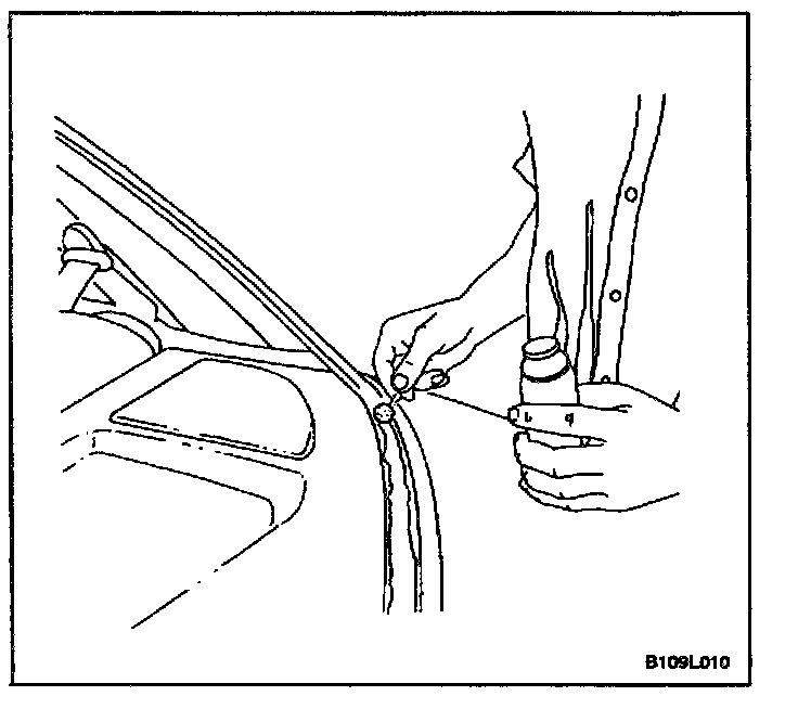 9. Check for waterleaks by pouring water on the rear window. If a leak is found, dry the window and fill the area that leaks with adhesive. If the leak persists, remove the rear window and repeat the entire procedure.