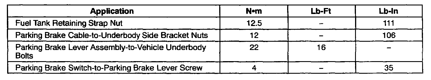 Parking Brake System: Specifications