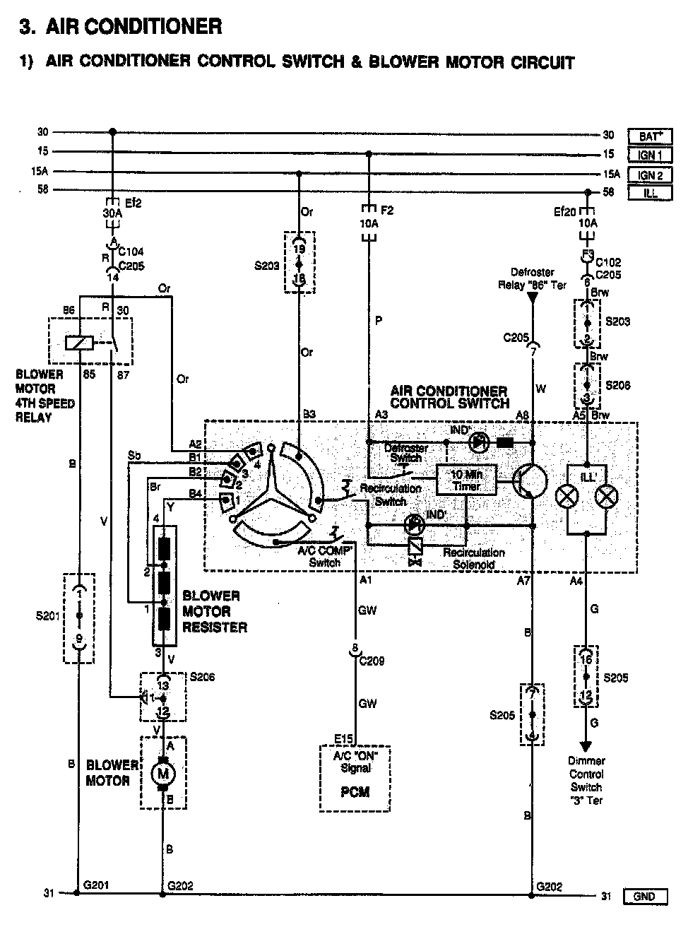 PCM/ECM Wiring Diagram A/C Control Switch and Blower Circuit: