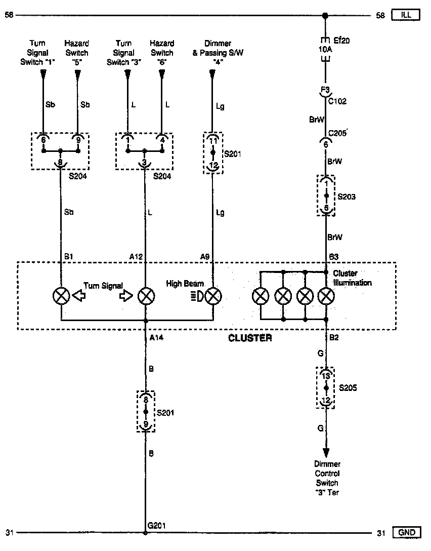 Indicator Lamp (Turn Signal/High Beam), Cluster Illum. Lamp Ckt