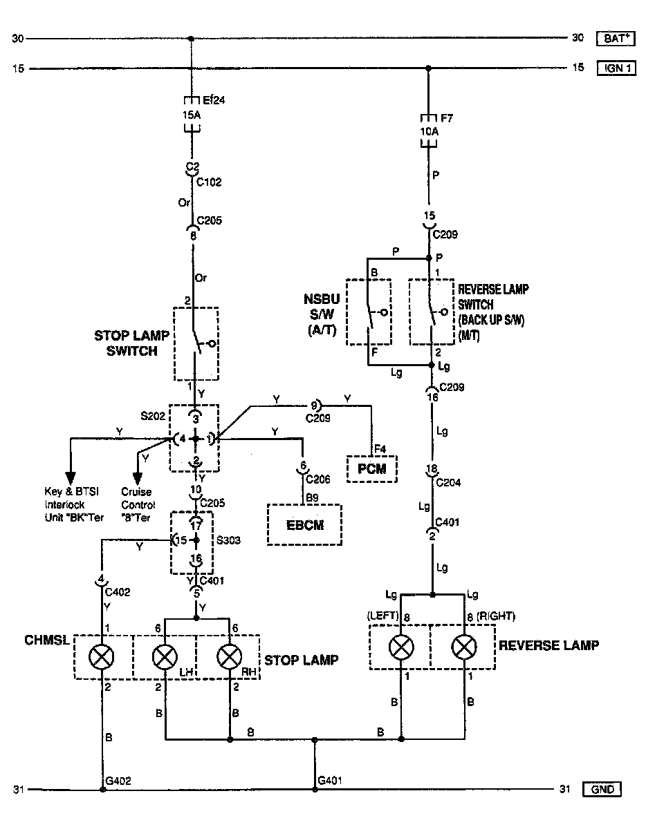 Stop Lamp/Center High Mount Stop Lamp (CHMSL)/Reverse Lamp Ckt