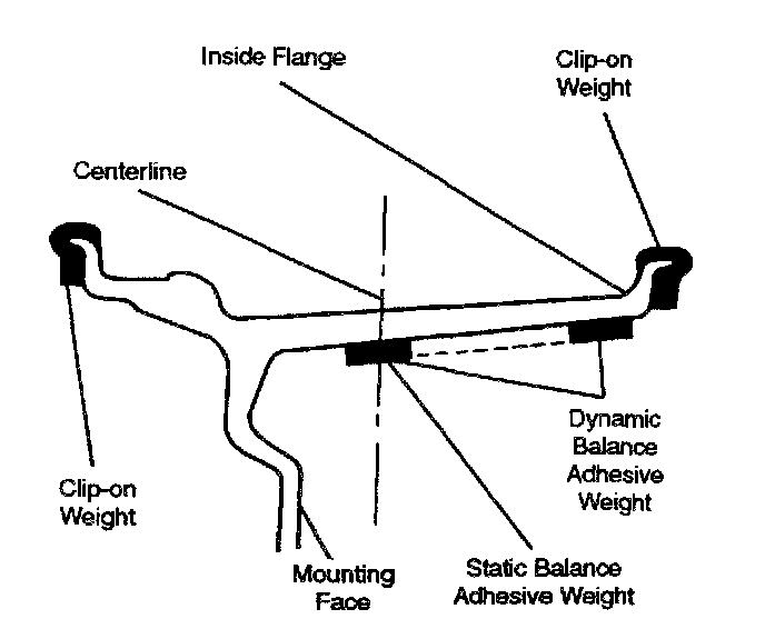 If more than 85 grams (3.0 ounces) are needed to static balance the wheel, split the wheel weights as equally as possible between the inboard and the outboard flanges. Balancing the assemblies with factory alloy wheels requires the use of special nylon-coated, clip-on wheel weights. These weights are designed to fit over the thicker rim flange of the alloy wheel. Install these weights with a plastic-tipped hammer.