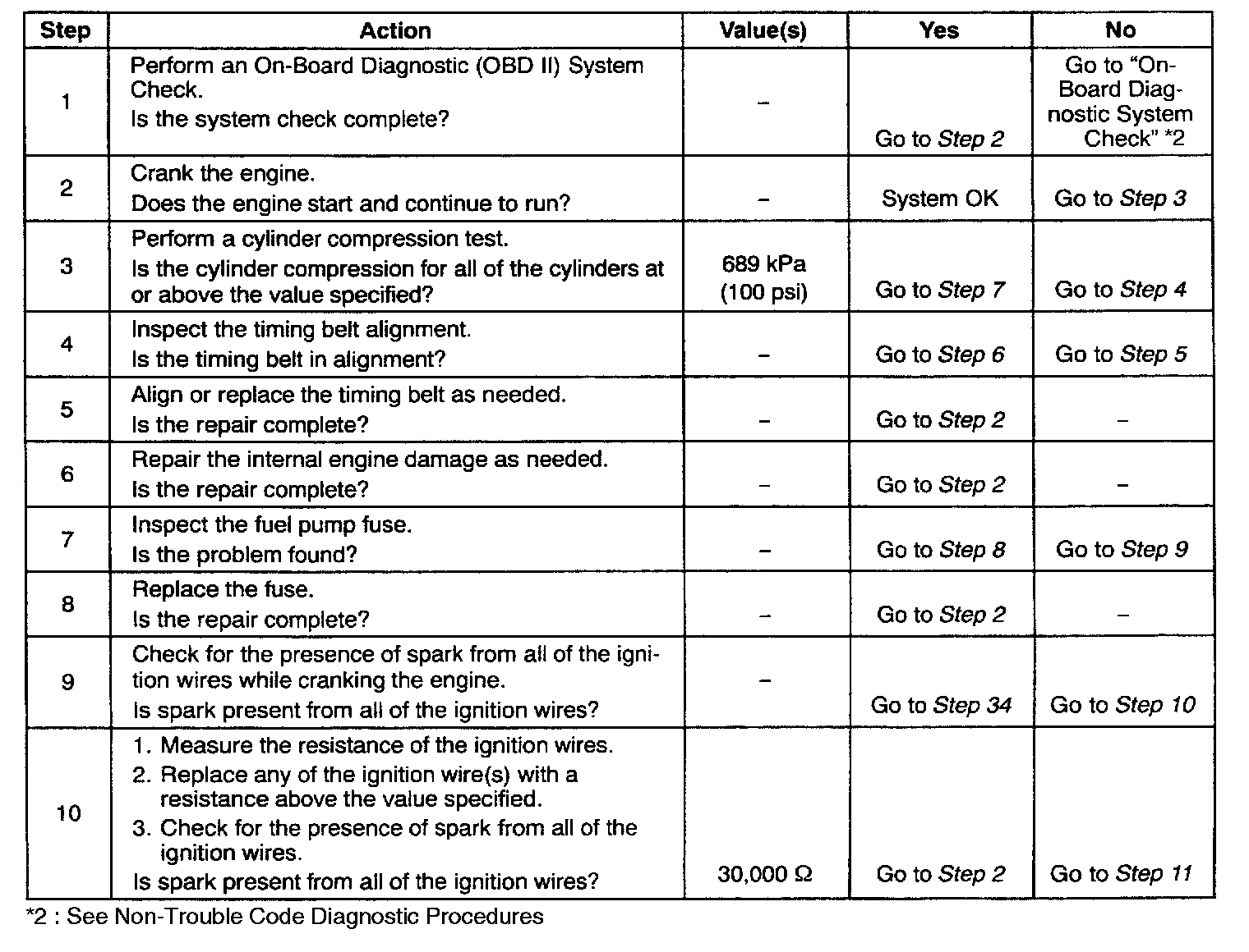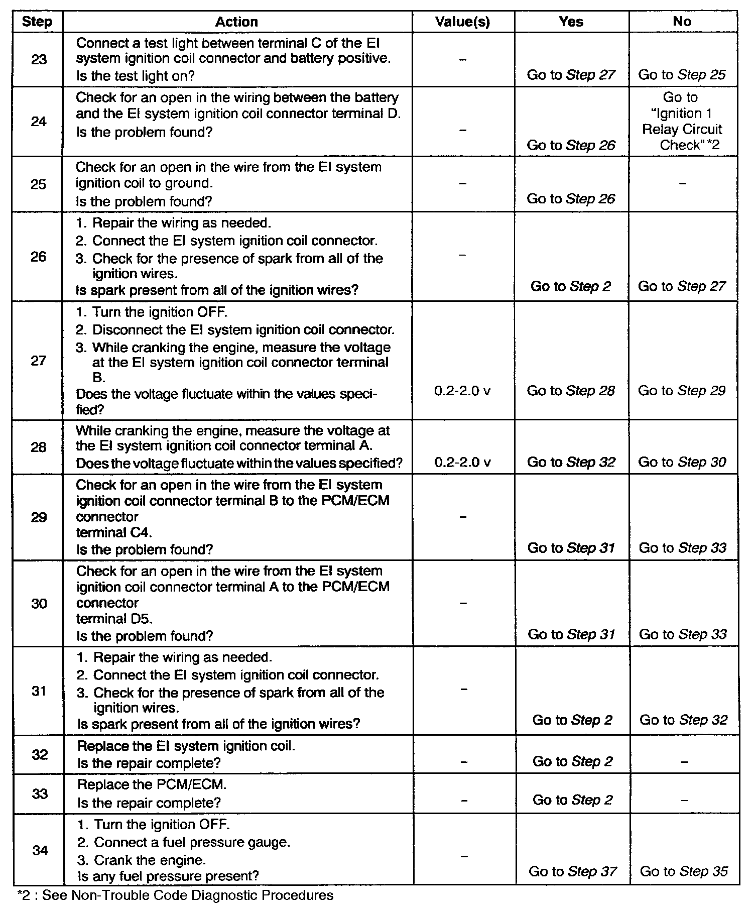 9. It is important to check for the presence of spark from all of the ignition wires. If spark is present from one to three of the ignition coil terminals, the crank-shaft position (CKP) sensor is OK.