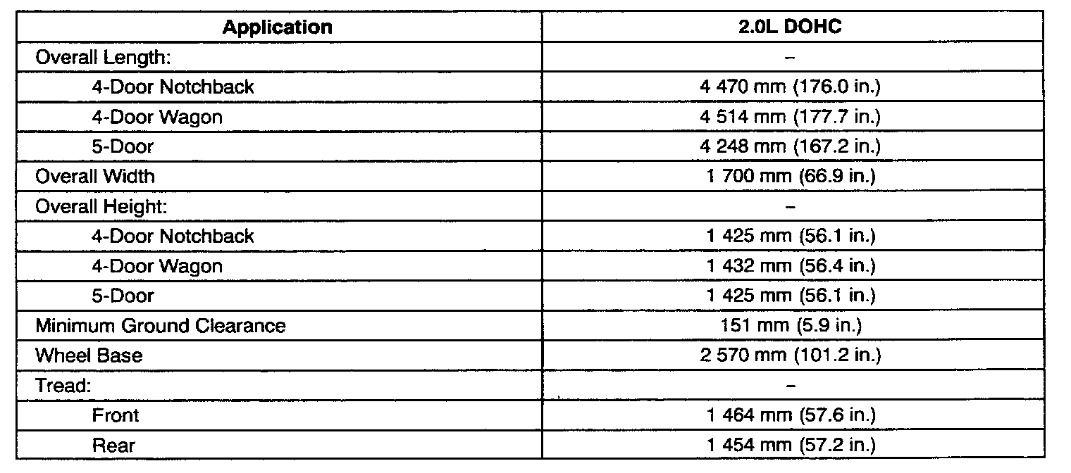 Vehicle Dimensions - Manual and Automatic