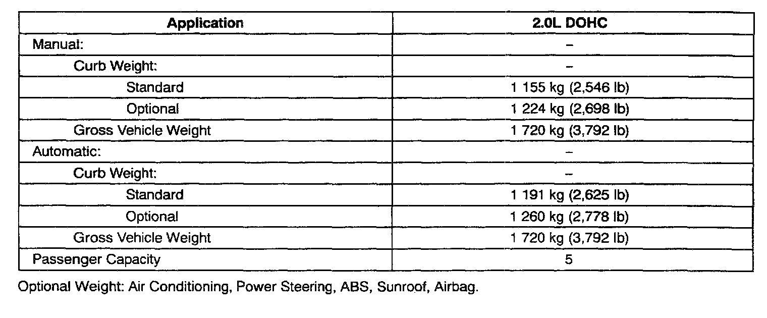Vehicle Weights - 4 Door Notchback