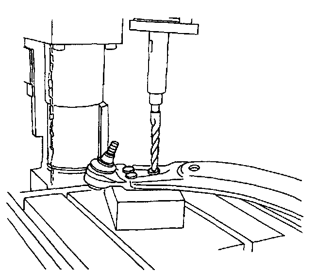 2. Drill off the heads of the three rivets with a 12 mm (0.47 inch) drill bit.