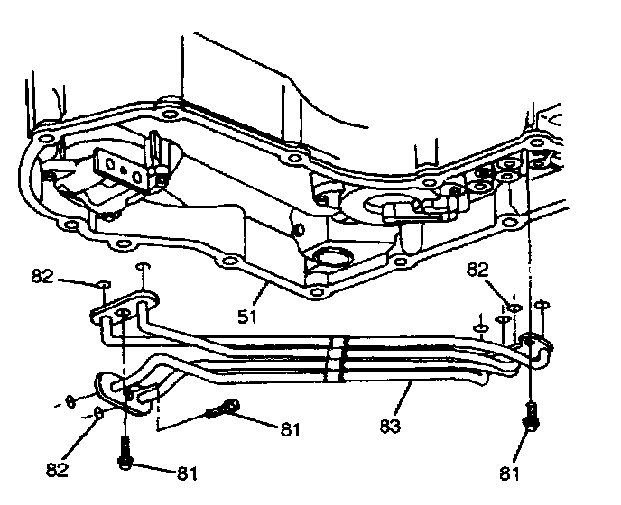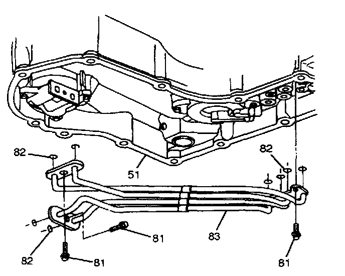 3. Remove the oil pipe bolts (81) and the pipes (83) from the transaxle case (51).