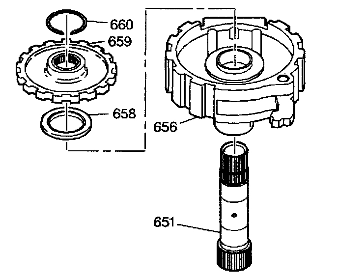 6. Remove the forward clutch support (656) from the final drive sun gear shaft (651).