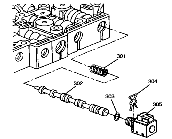 3. Remove the solenoid retainer clip (304) from the valve body.