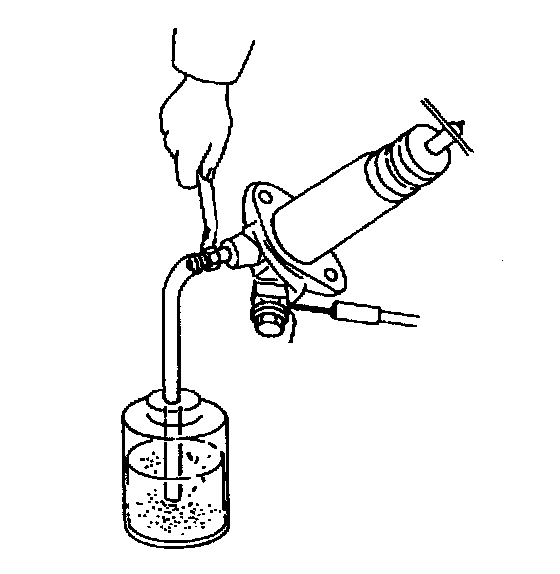 3. While you press the clutch pedal, loosen the bleeder screw until the fluid starts to run out. Close the bleeder screw.