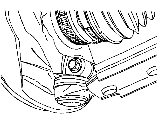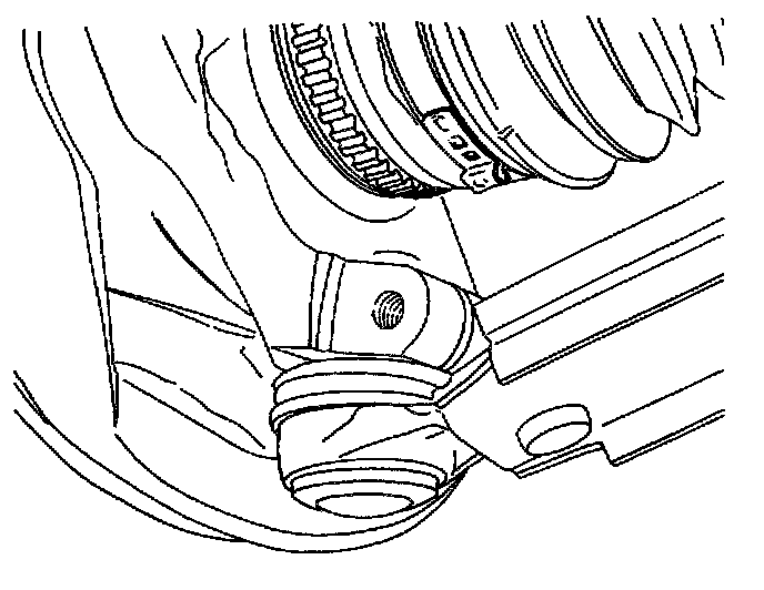 Important: Support the unfastened end of the drive axle. Do not allow the drive axle to dangle freely from the transaxle for any length of time after it has been removed from the wheel hub. Place a drain pan below the transaxle to catch the escaping fluid. Cap the transaxle drive opening after the drive axle has been removed to keep the fluid in and any contamination out.