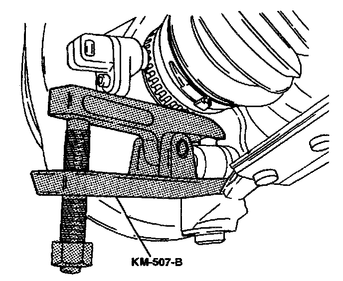 6. Separate the steering knuckle from the lower ball joint using the ball joint separator KM-507-B.