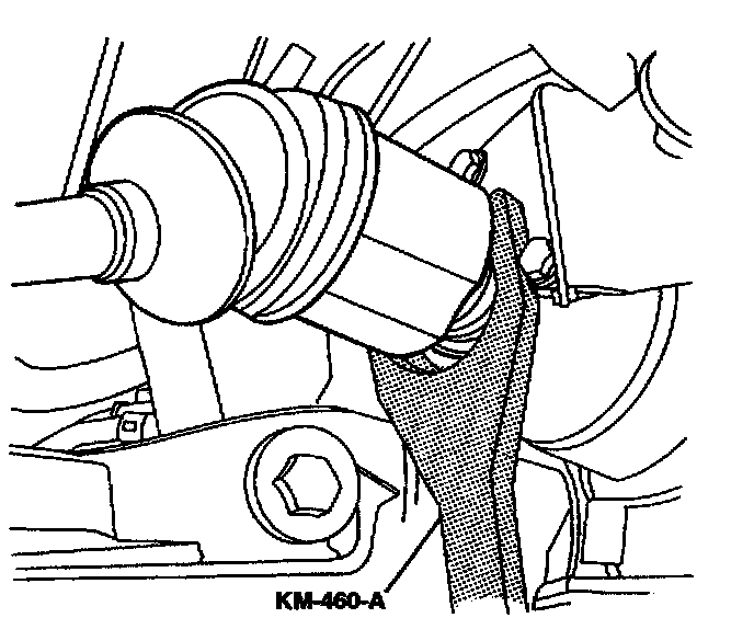 10. Remove the drive axle from the transaxle using the axle shaft remover KM-460-A.