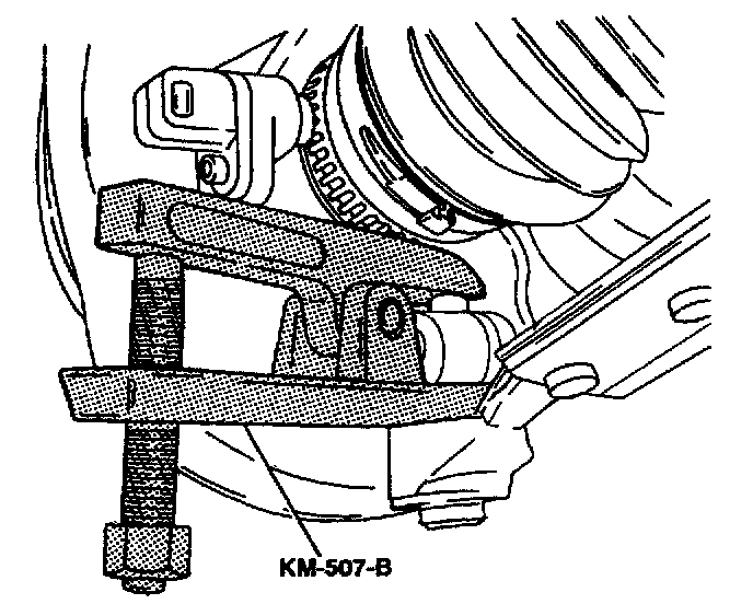 6. Separate the steering knuckle from the lower ball joint using the ball joint separator KM-507-B.