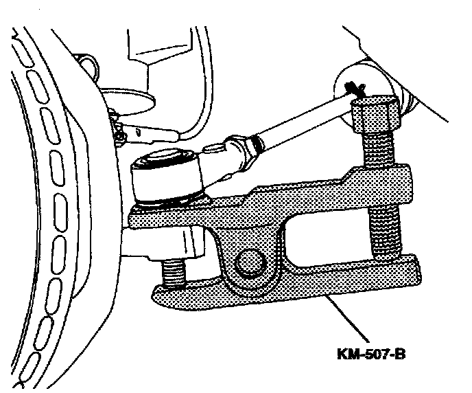 8. Separate the tie rod end using the ball joint separator KM-507-B.