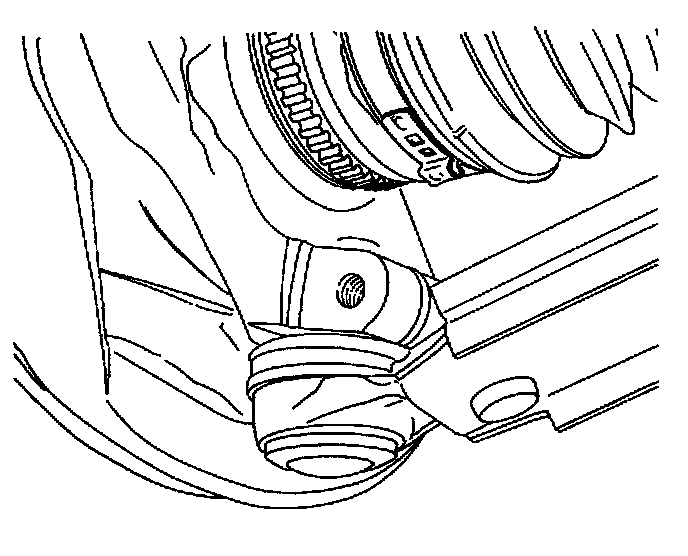 Important: Support the unfastened end of the drive axle. Do not allow the drive axle to dangle freely from the transaxle for any length of time after it has been removed from the wheel hub. Place a drain pan below the transaxle to catch the escaping fluid. Cap the transaxle drive opening after the drive axle has been removed to keep the fluid in and any contamination out.