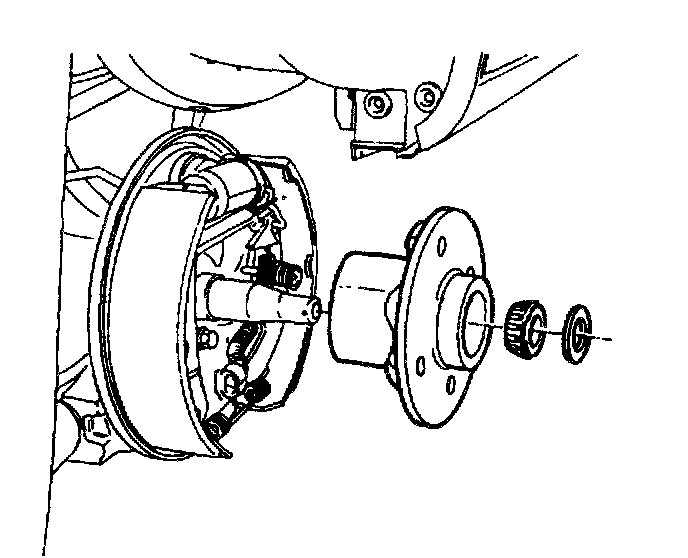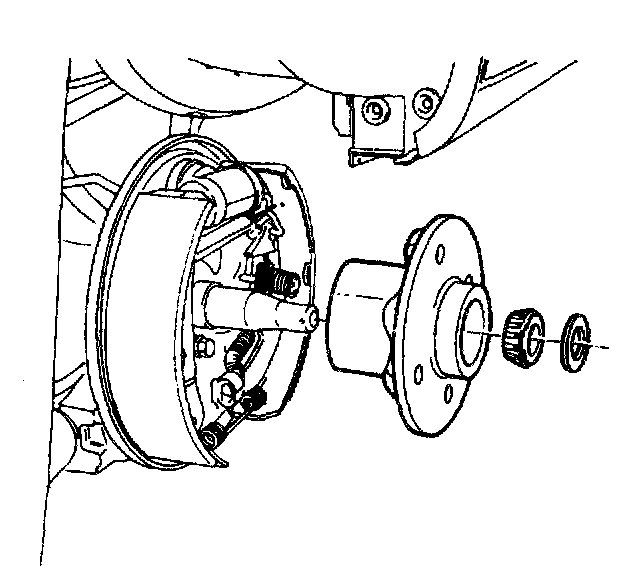 6. Remove the lock washer, the outer tapered bearing, and the hub assembly.