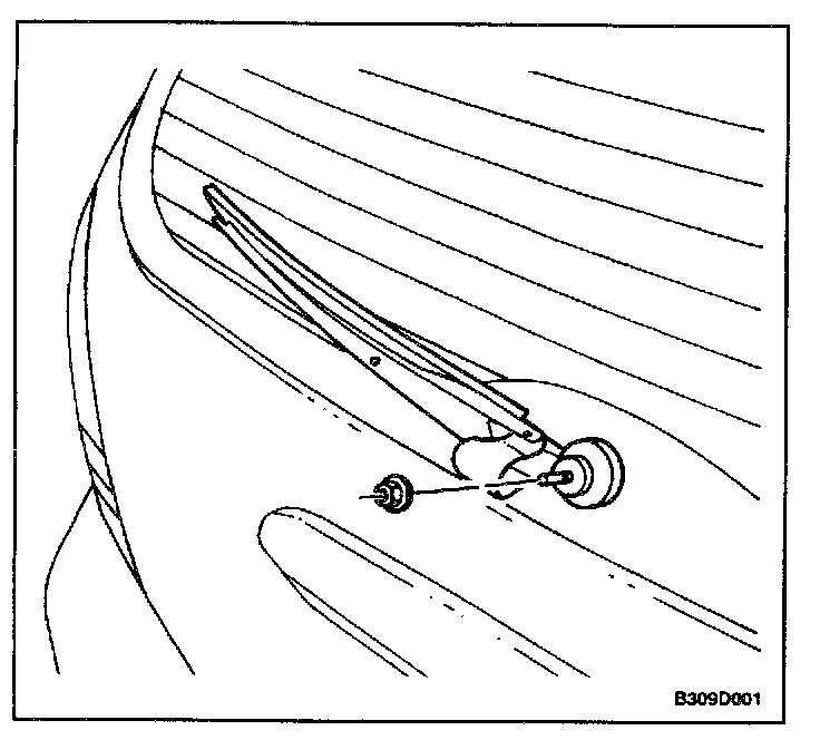 2. Remove the nut and the rear wiper arm.