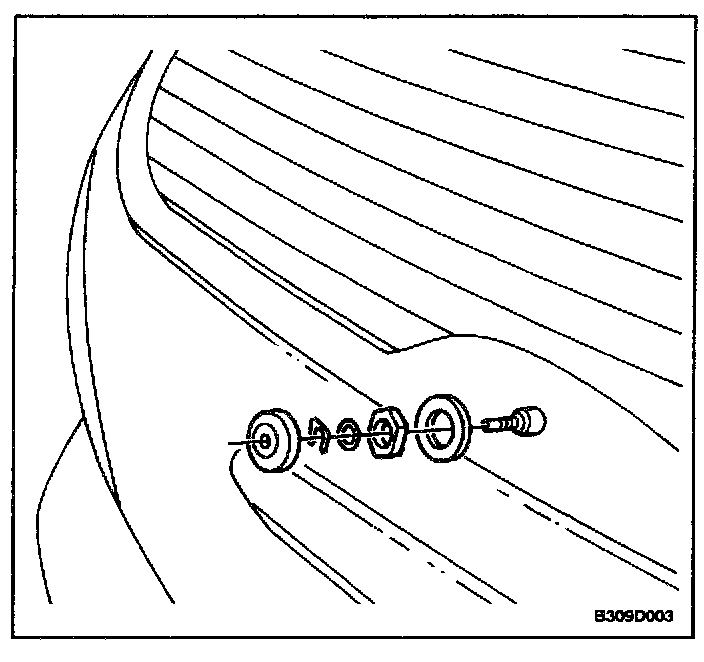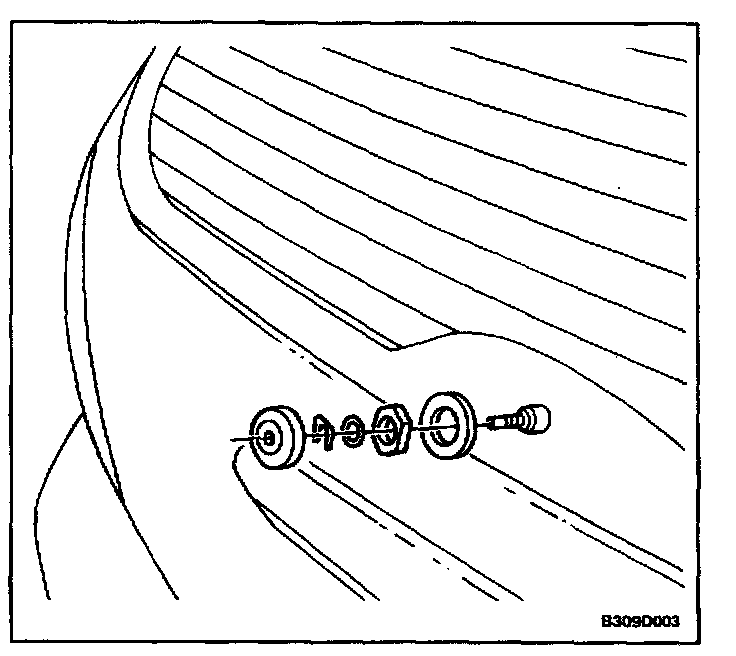 3. Remove the wiper motor exterior retaining clip and the nut from the tailgate.