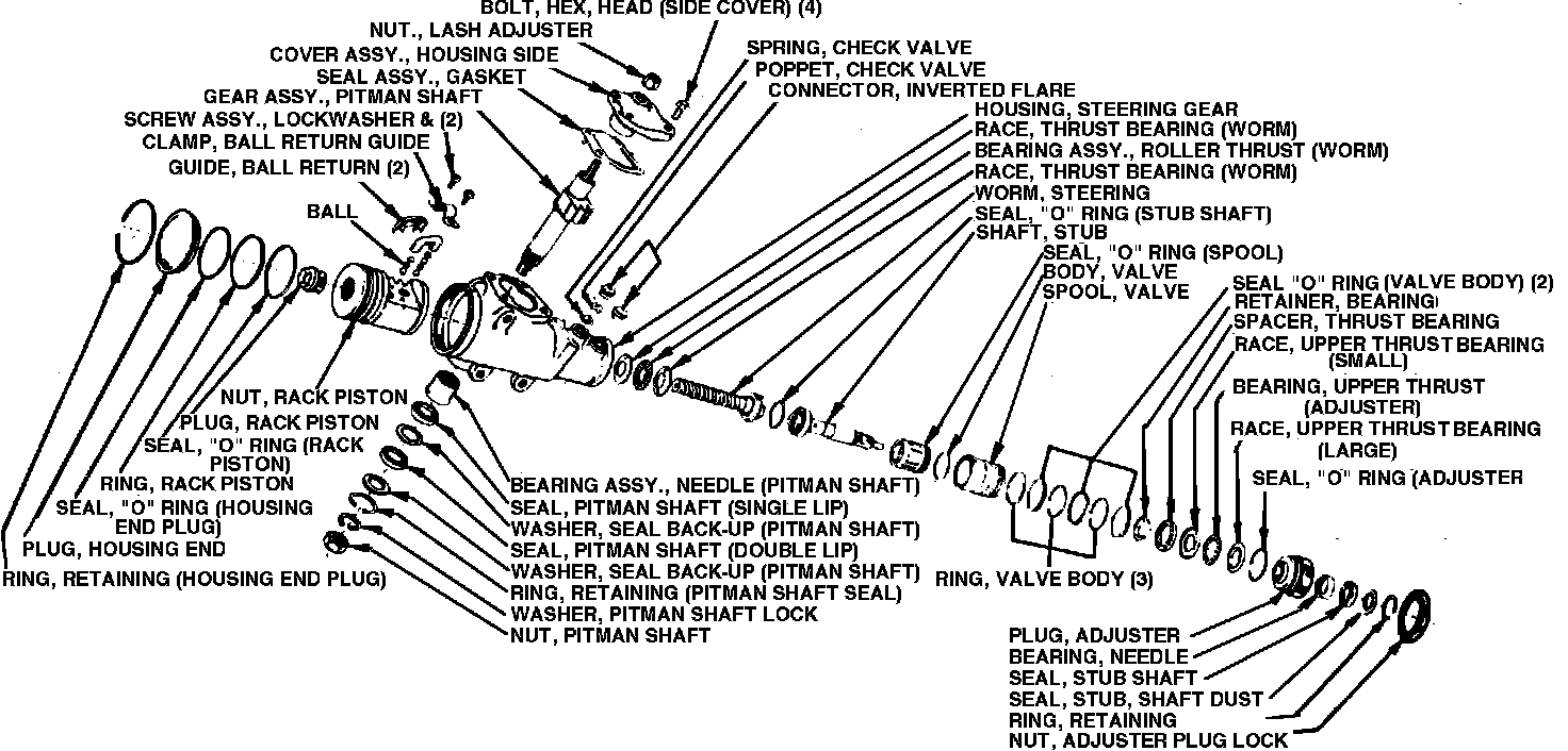 Fig. 3 Model 800-808 power steering gear disassembled: