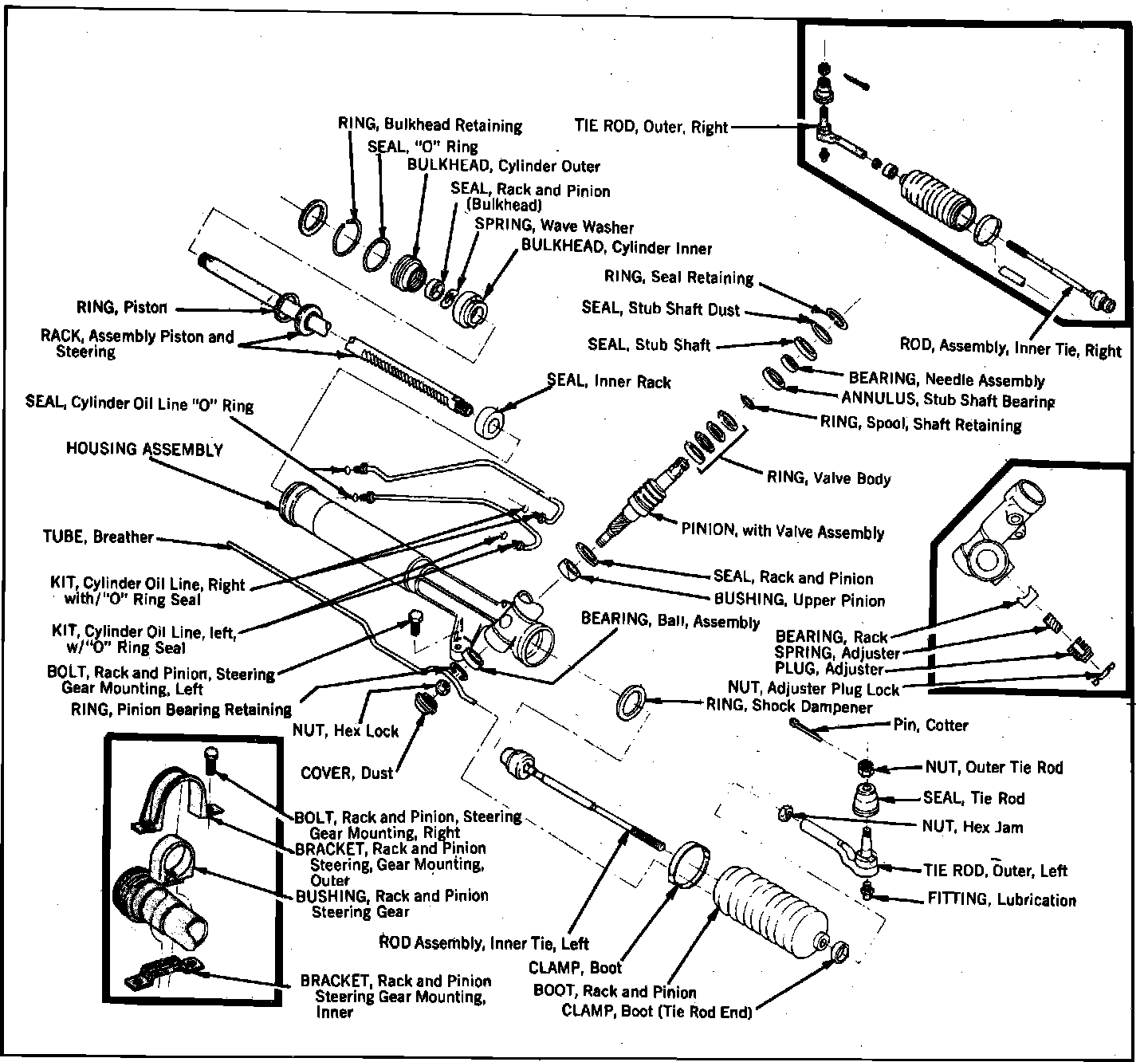 Fig. 1 Exploded view of Saginaw power rack & pinion steering gear: