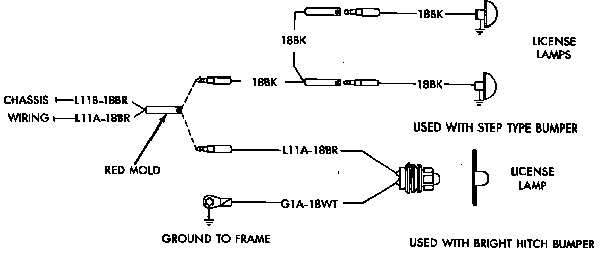Fig. 36 License Lamp Wiring Circuit. 1983-84 W/Step Hitch Bumper: