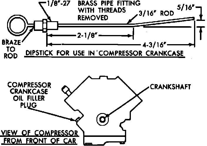 Fig. 1 Dipstick fabrication & oil filler plug location. RV-2 compressor: