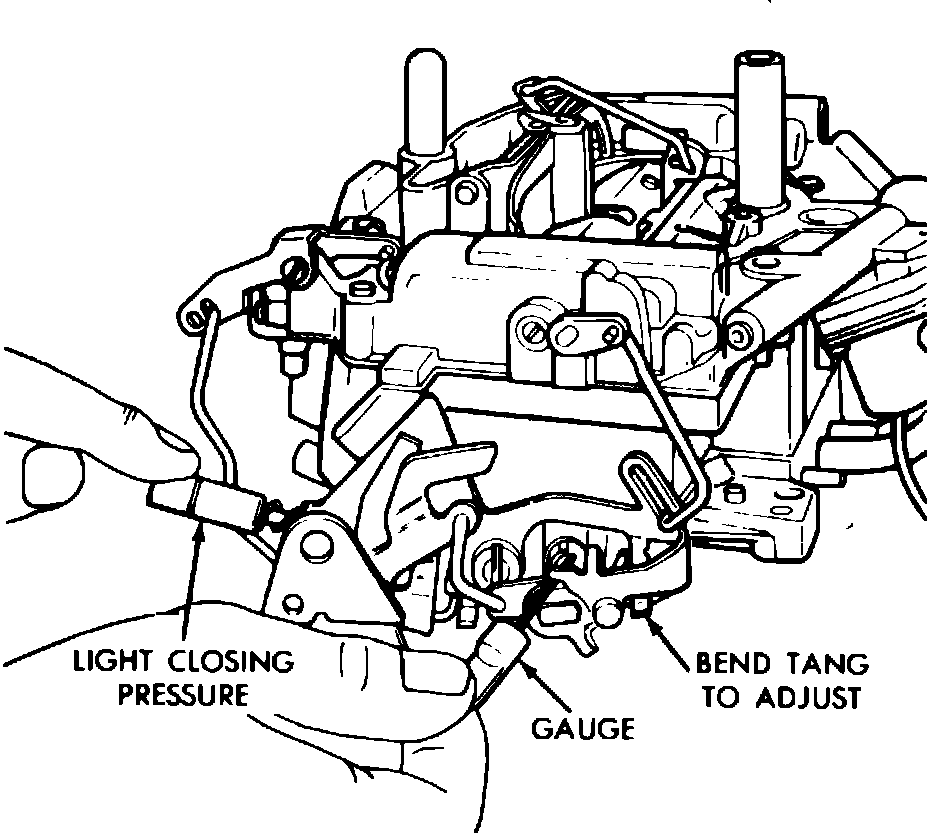 Move choke control lever to open choke position. Measure clearance between lockout lever and stop, Fig. 14. Clearance should be .060---.090 inch. Adjust by bending tang on fast idle control lever.
