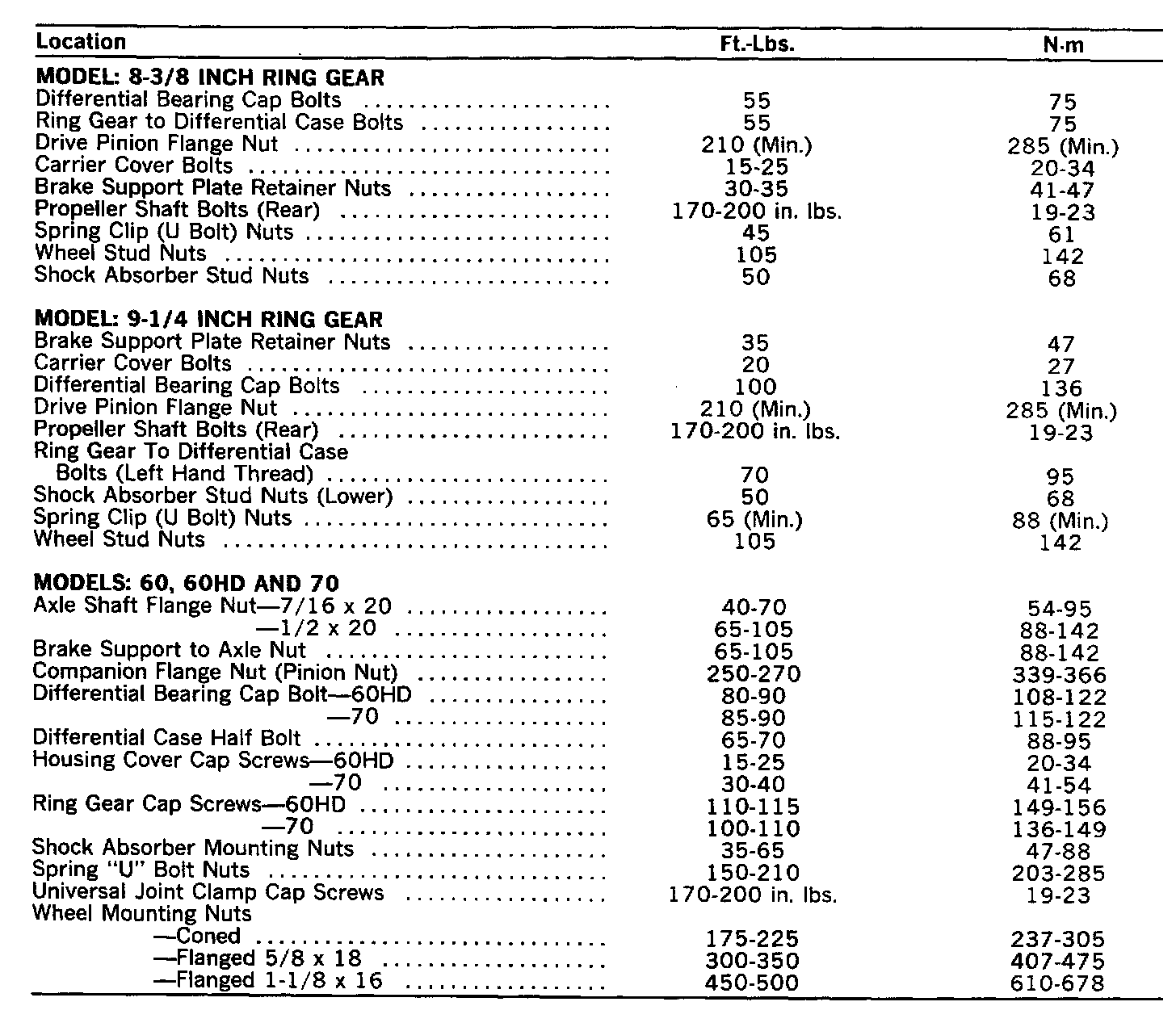 8-3/8, 9-1/4, Inch Axle and 60, 60HD And 70 Models: