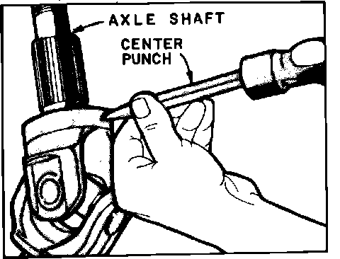 a. Measure in from yoke shoulder of axle approximately 3/8 inch. Use a center punch and stake at 1/4 inch intervals around circumference of shaft. This will size shaft and ensure a tight fit of inner seal slinger.