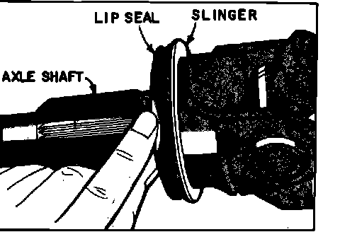 2. Using driver, Tool No. C-4398-1, install seal slinger with lip toward splines onto outer axle shaft.