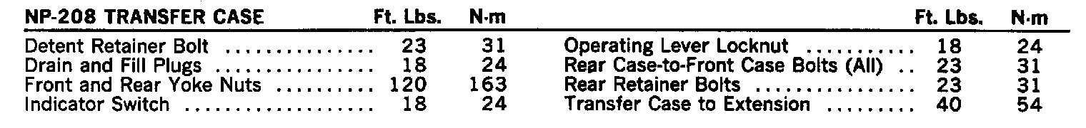 NP-208 Torque Specifications: