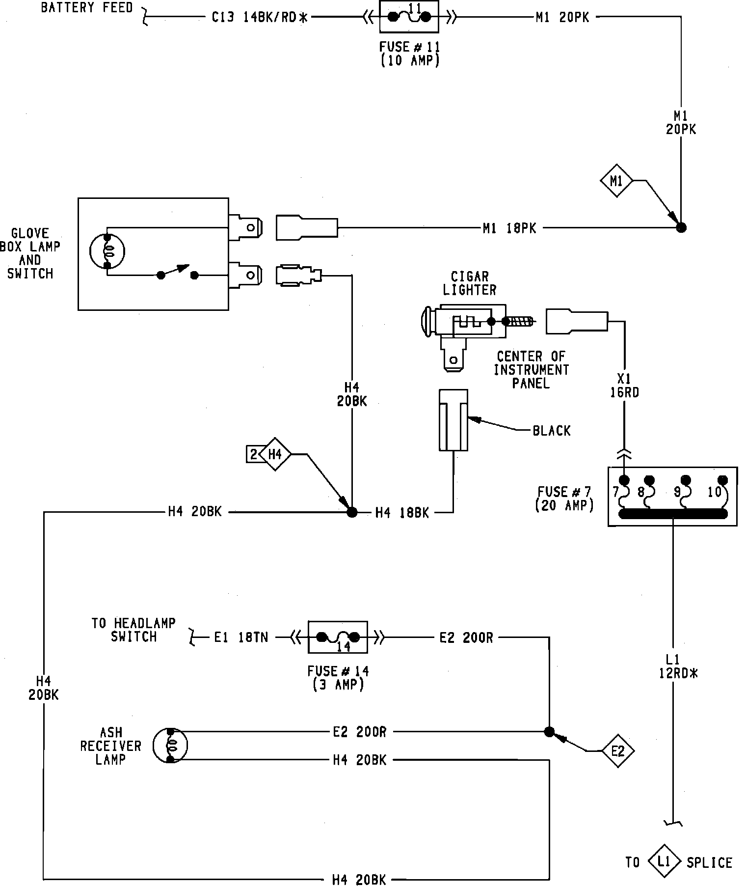 Ashtray Lamp, Cigar Lighter & Glove Box Lamp Wiring Circuit: