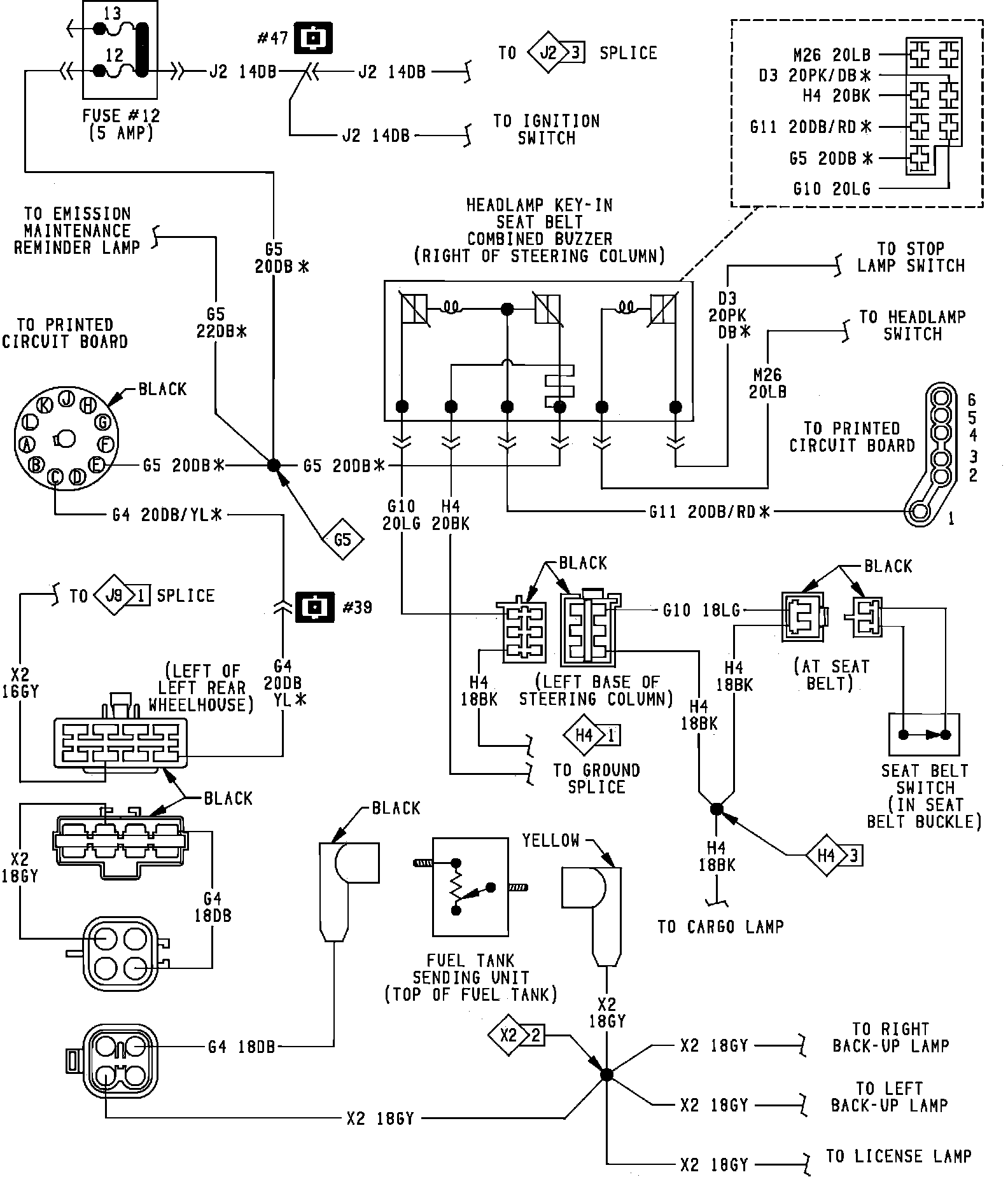 Fuel Gauge & Seatbelt Warning System Wiring Circuit. Less EFI: