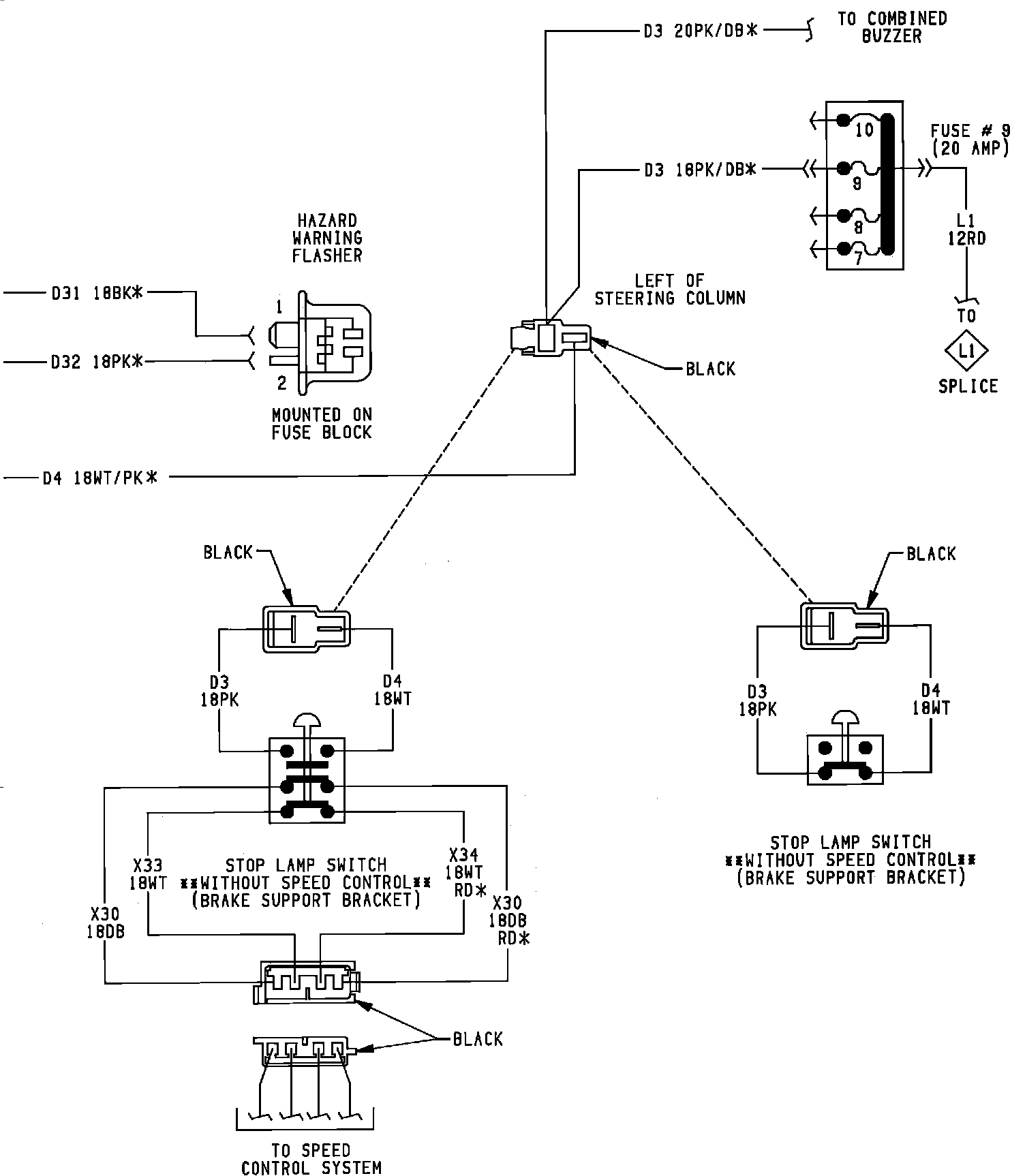 Hazard Flasher & Stop/Turn System Wiring Circuit: