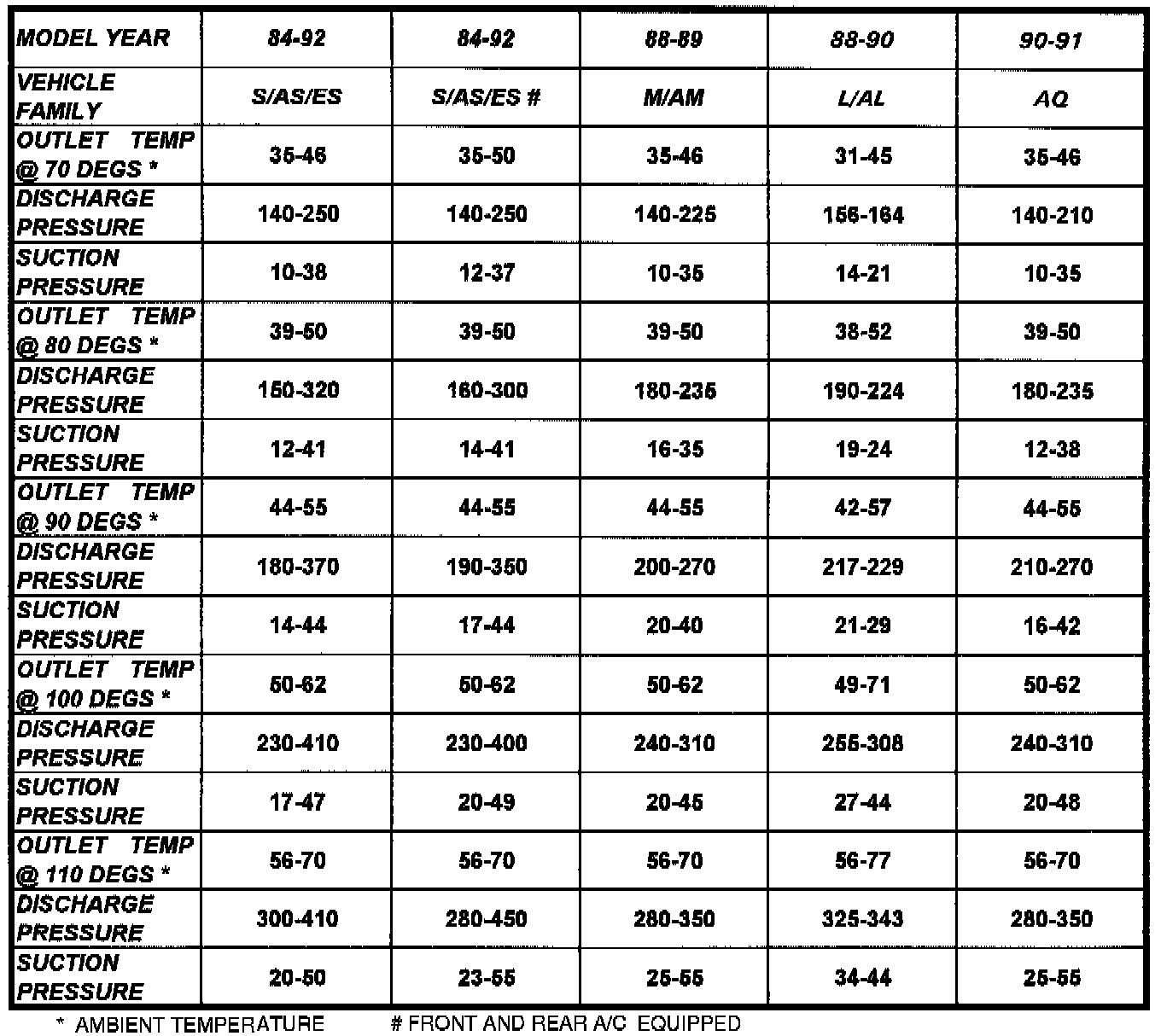 4. 1987-1992 (AS) vehicles equipped with 3.0L/3.3L engines and front and rear A/C may exhibit high system pressures and panel outlet temperature variations when operated in high ambients after being adapted to R-134a. These vehicles may require an engine cooling system upgrade package.