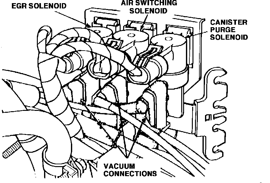 The switch/relief valve solenoid is a vacuum operated solenoid that controls the operation of the switch/relief valve. The vacuum operated solenoid is part of a vacuum trio located on the right valve cover, towards the firewall.