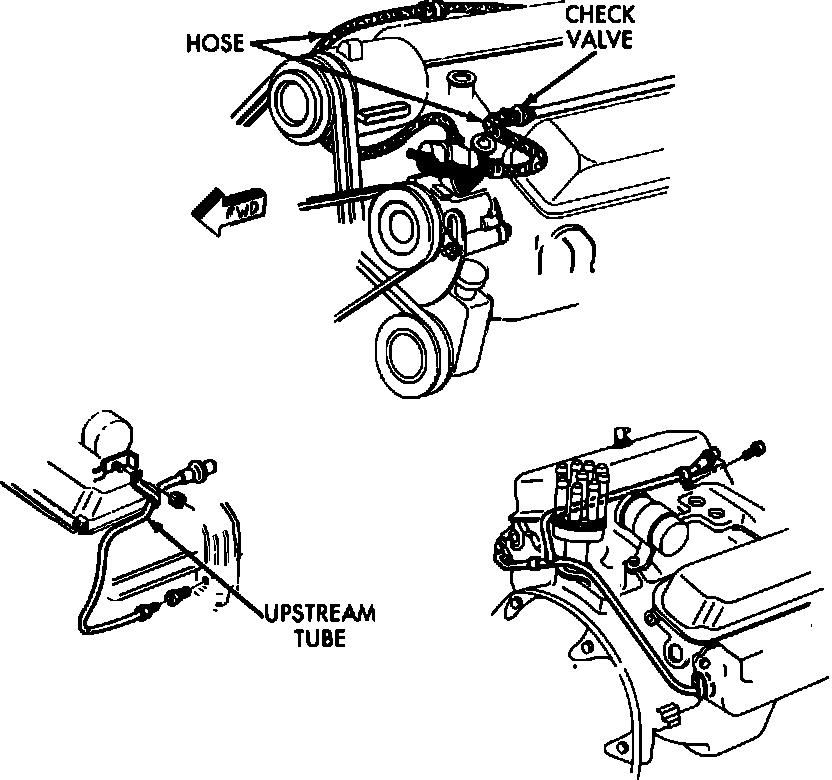 The purpose of the check valve is to protect the air injection system in the event that the air pump belt fails, exhaust system pressure raises to an abnormally high level, or an air hose ruptures. This valve has a one way diaphragm which prevents hot exhaust gases from getting to the rubber hoses or the air pump.