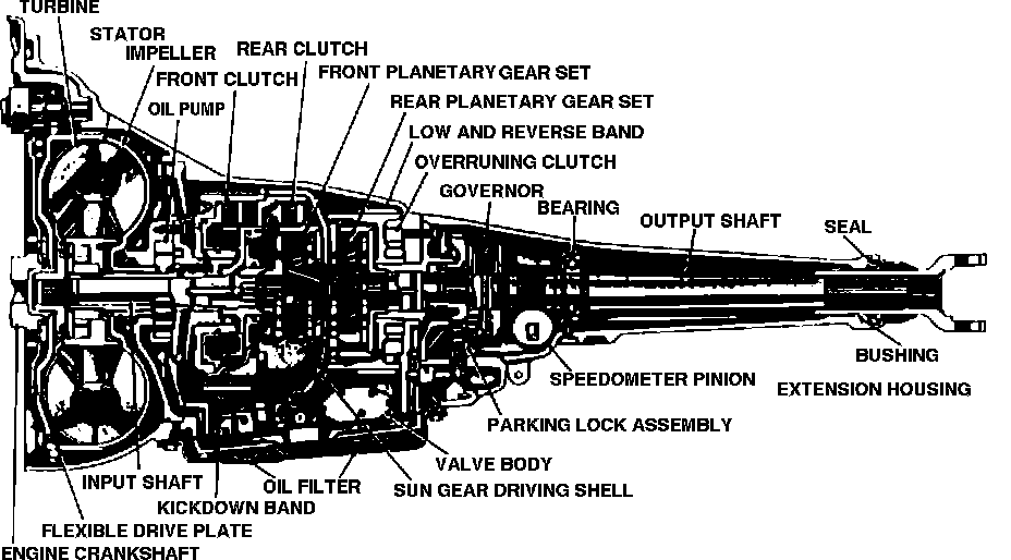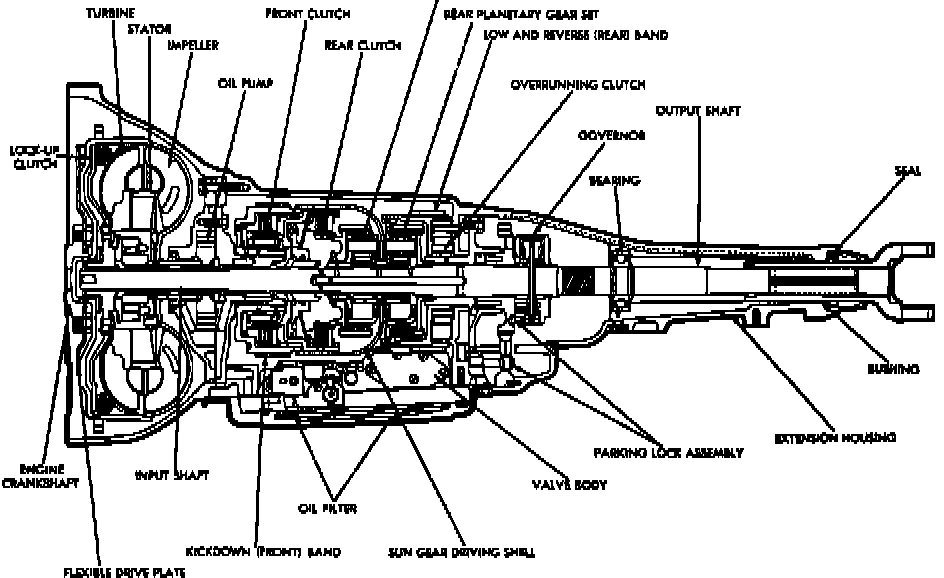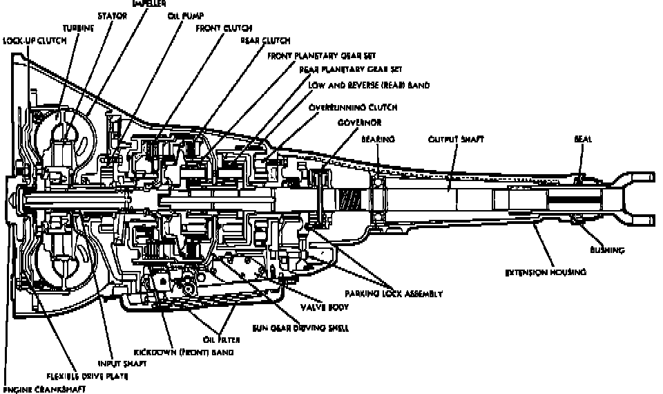 Fig. 1 Loadflite 727 automatic transmission less lock-up torque converter: