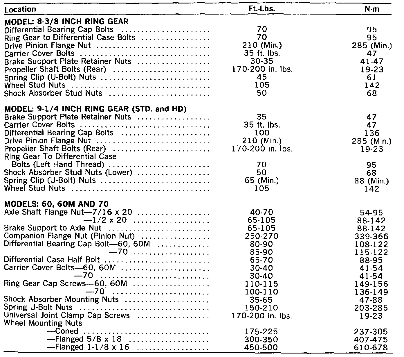 Torque Specifications: