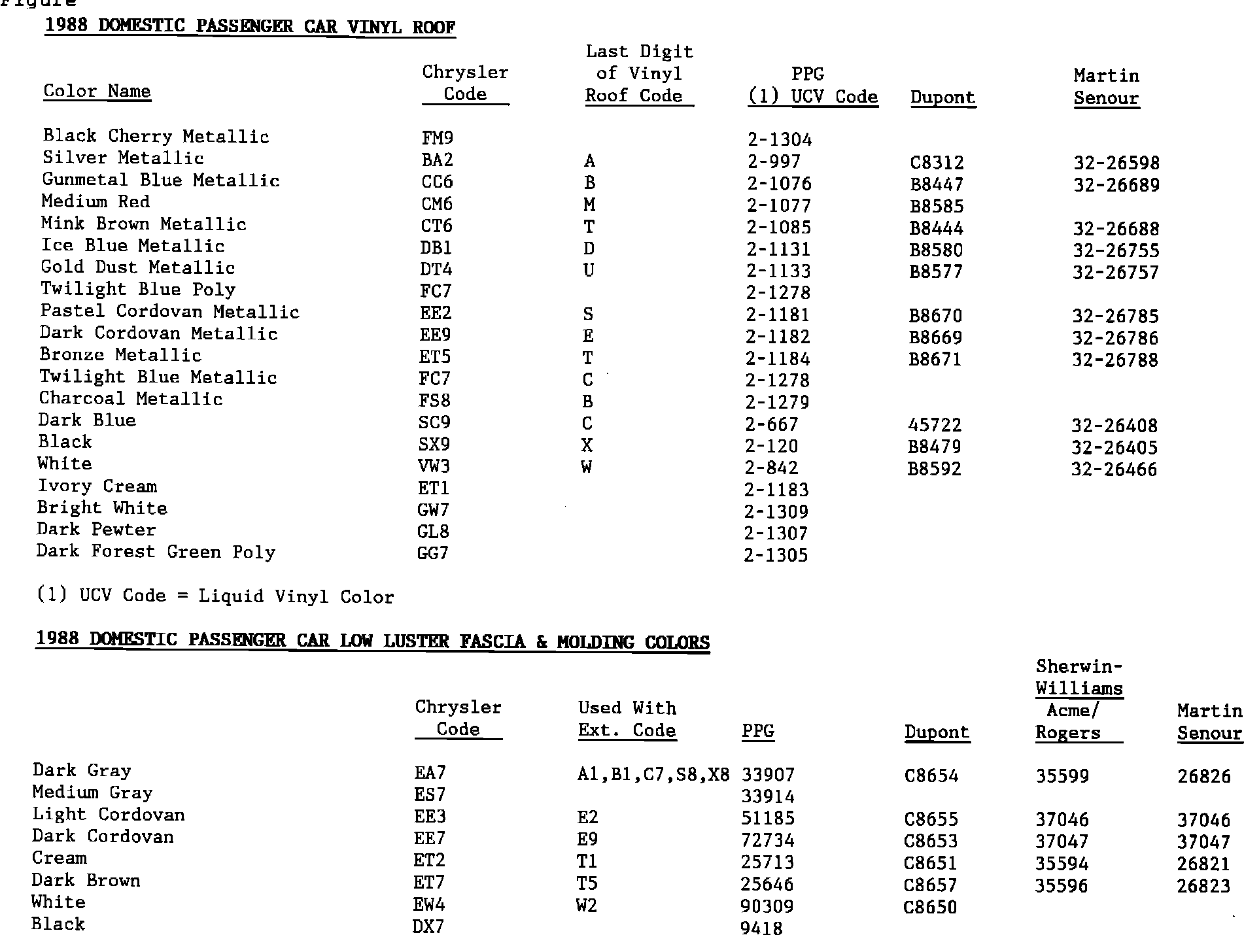 1988 Domestic Passenger Car Vinyl Roof & Low Luster Fascia & Molding Information